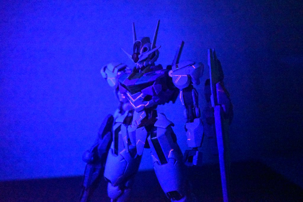 エアリアルはシールド展開時の発光が印象的だったので、スミ入れはガイアノーツのエナメル蛍光ピンクで行っています。