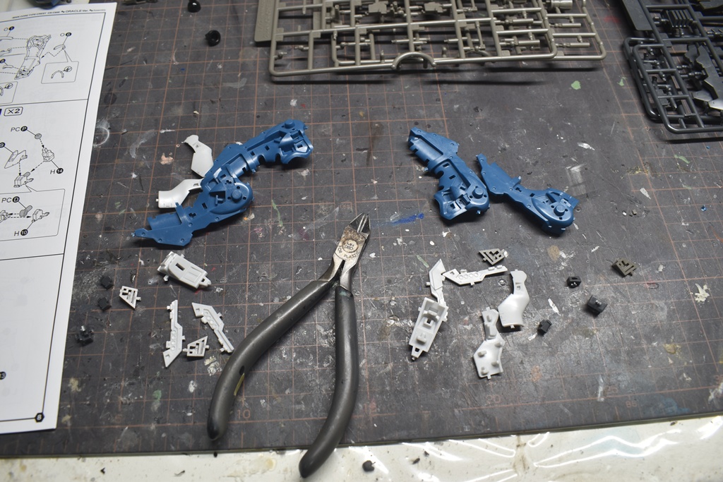 腕や脚部は同じランナーが二枚構成になっているので、重ねてまとめておきます。