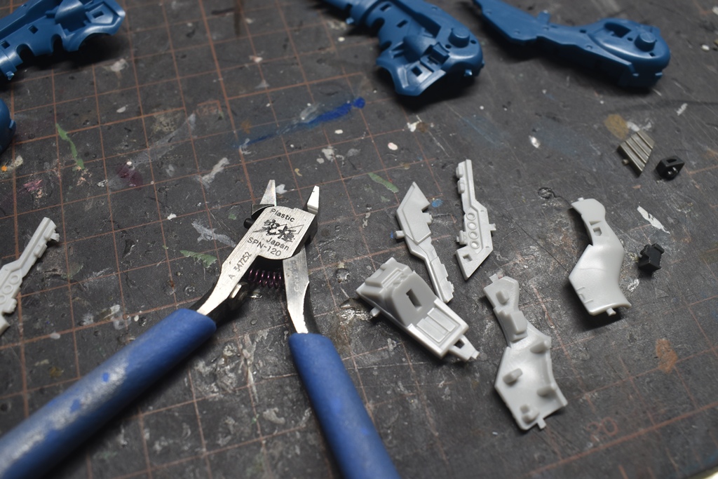 ゲートをゼロアタックしてもいいんですが、パーツをえぐってしまうとその後の処理が面倒なので、私は二度切りを前提としています。