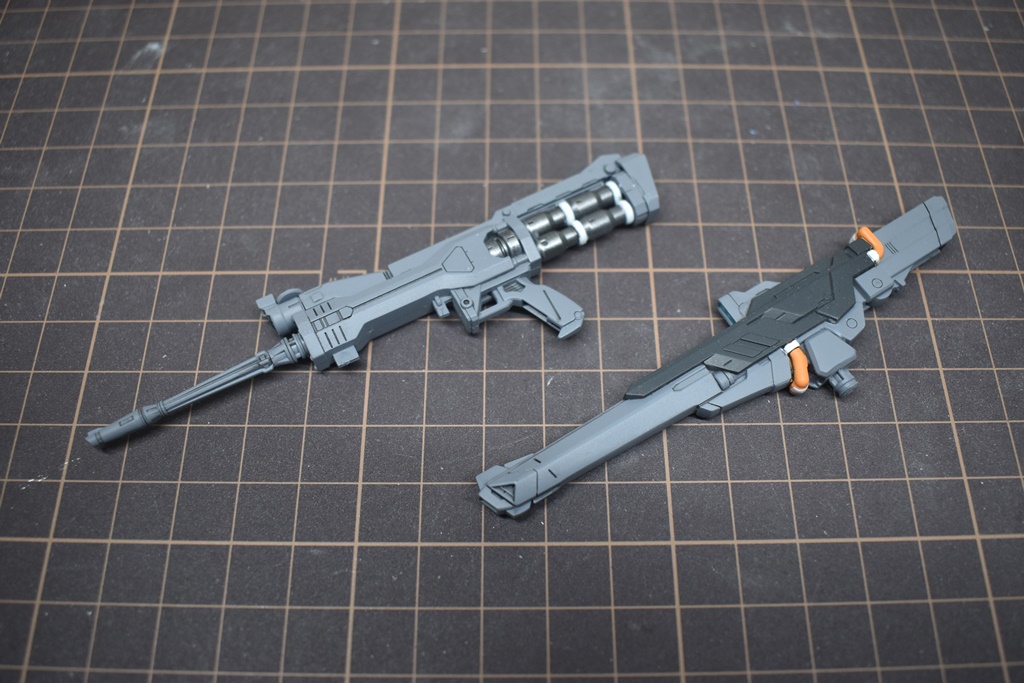 銃のグリップなど内側からヤスリを掛けなければいけない部分もあり、ここの合わせ目を消すのは中々の難易度です。