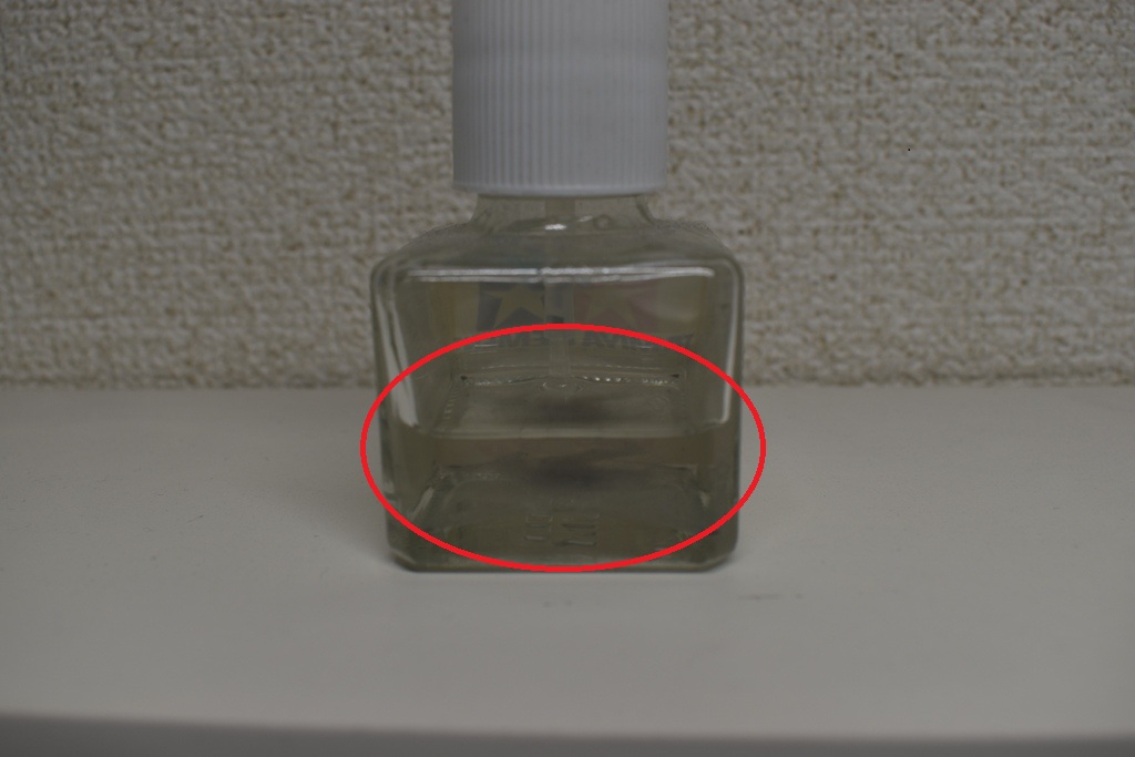 それが、量が少なくなってきたときにハケに液体がつきづらくなることです。