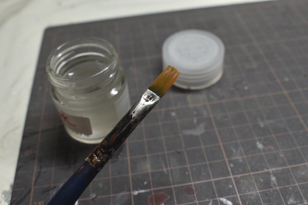 作っているプラモが完成して、筆を仕舞う、保管しておく、というときに、筆に塗っておくといいですね。