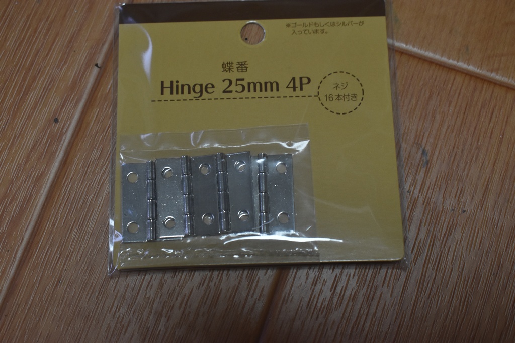 カラーボックスとの接続は100均で売っている丁番を使います。