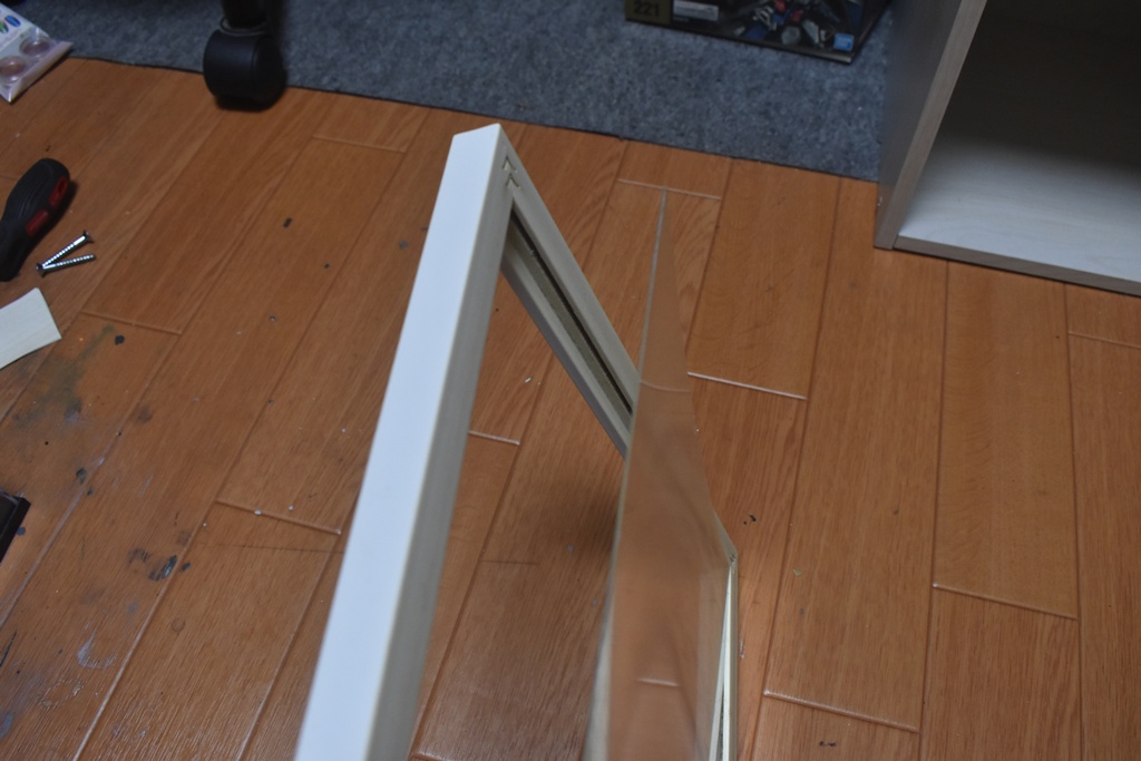 このままでも飾り棚としては十分機能していますが、大きな問題としては埃が入ってしまう、という点があります。