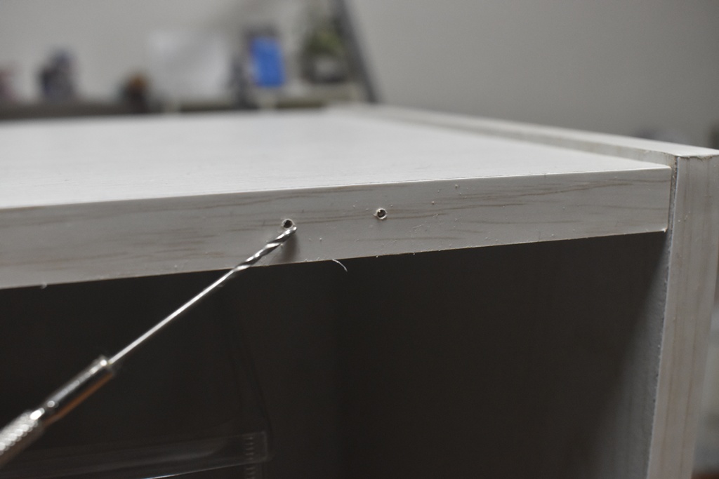 今回用意したのは、ダボ穴があって、棚の高さがある程度変えられるものを選んでいます。